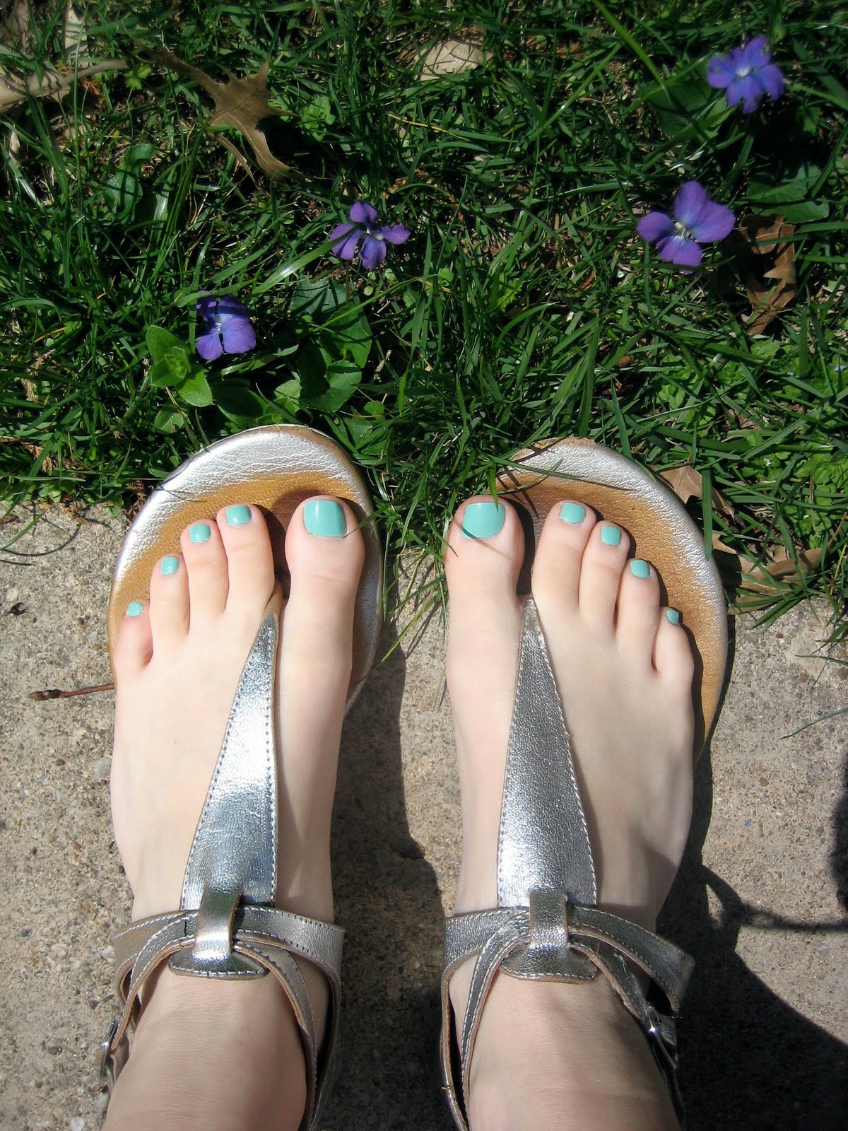 Only you could pull off green toes:) My sandals fell apart completely:(